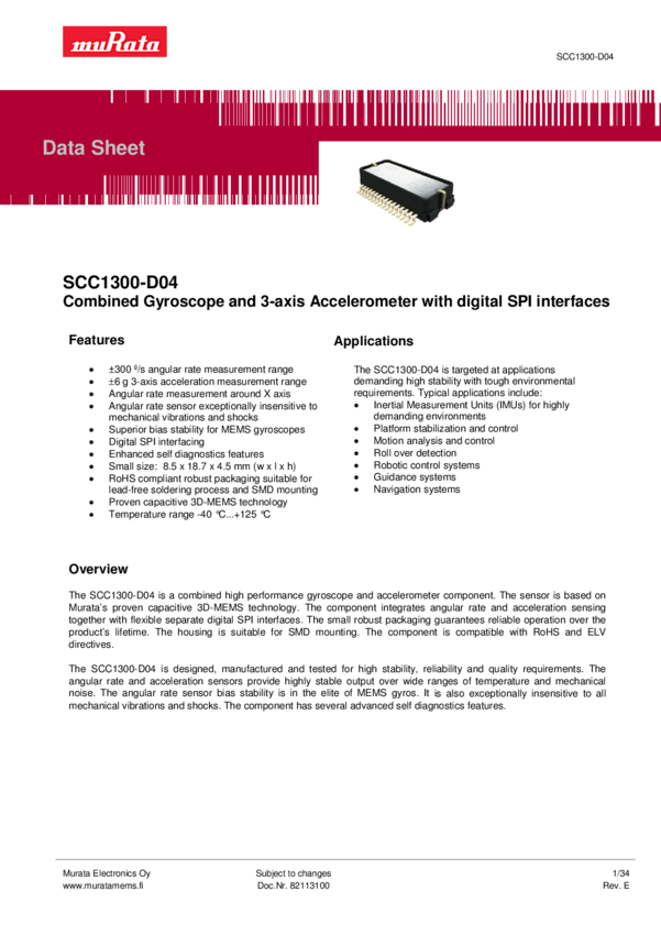 Development Kit For SCC1300 Combined Gyroscope and Accelerometer