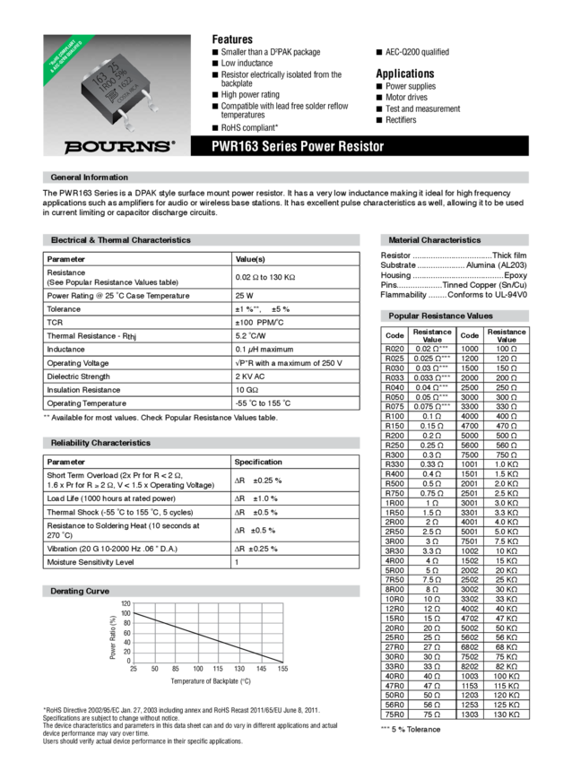 PWR163S-25-50R0F Res Thick Film 50 Ohm 1% 25W ±100ppm/°C Molded SMD D2PAK Tube