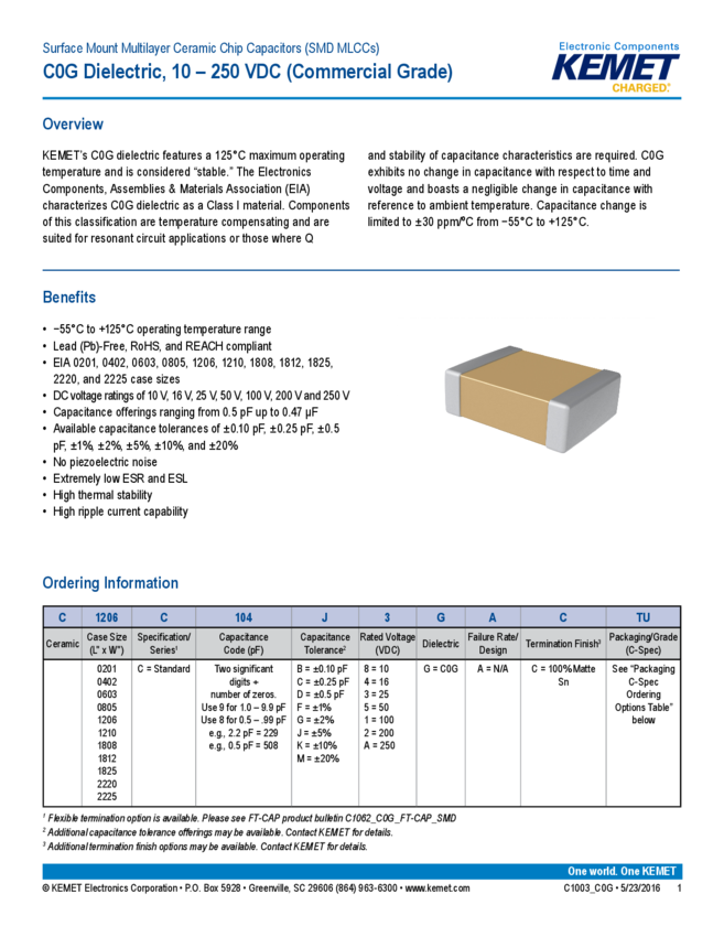 C0805C331J1GAC Cap Ceramic 330pF 100V C0G 5% SMD 0805 125°C Bulk