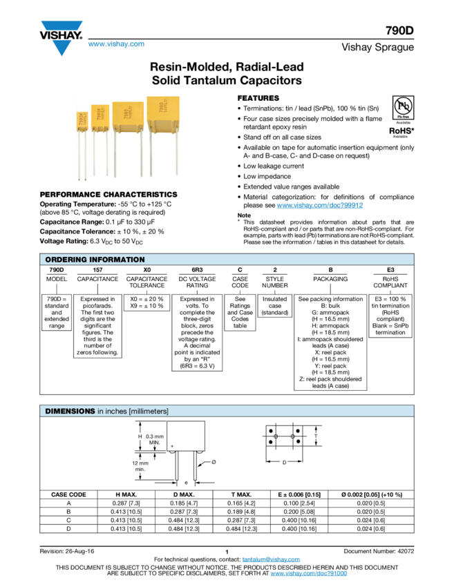 - 790D157X06R3C2GE3, 790D107X9016D2BE3, 790D476X9016C2BE3, 790D475X9010A2XE3, 790D475X0050B2HE3, 790D476X0020C2HE3, 790D476X0020C2XE3, 790D685X06R3A2HE3, 790D686X0020C2BE3, 790D686X9020C2XE3, 790D106X0035B2HE3, 790D156X0050C2BE3, 790D225X9040B2YE3, 790D226X9040C2XE3, 790D475X0050B2GE3