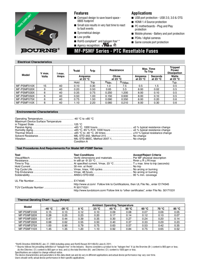 MF-PSMF075X-2 PTC Resettable Fuse 40A 6V T/R