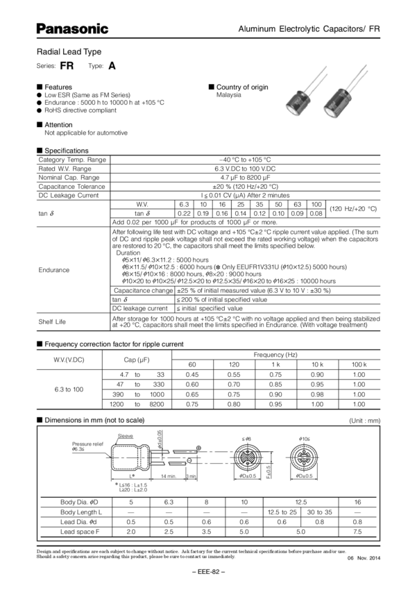 EEUFR1E102, EEUFR1E122L, EEUFR1E680, EEUFR1C182L, EEUFR1C392S, EEUFR1C472L, EEUFR1C562, EEUFR0J151, EEUFR1A101, EEUFR1A151, EEUFR1C680