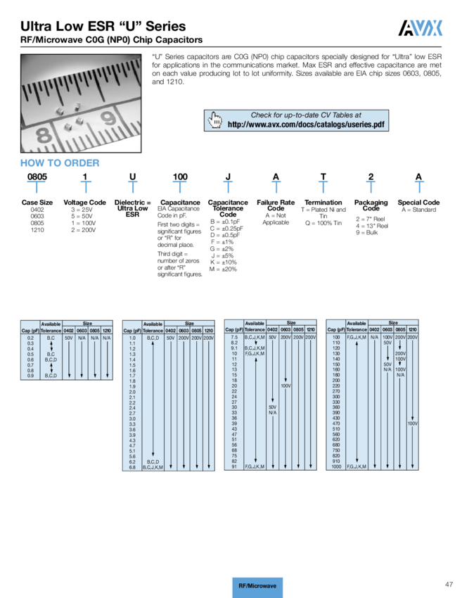 06035U131GAT2A Cap Ceramic 130pF 50V C0G 2% SMD 0603 125°C T/R