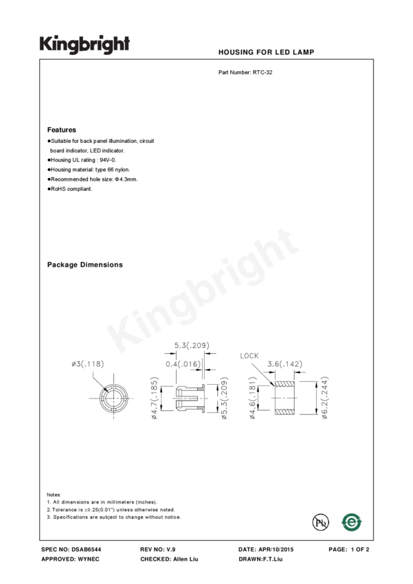 RTC-32-CLIP LED Housing For Back Panel Illumination, Circuit Board indicator, LED Indic...