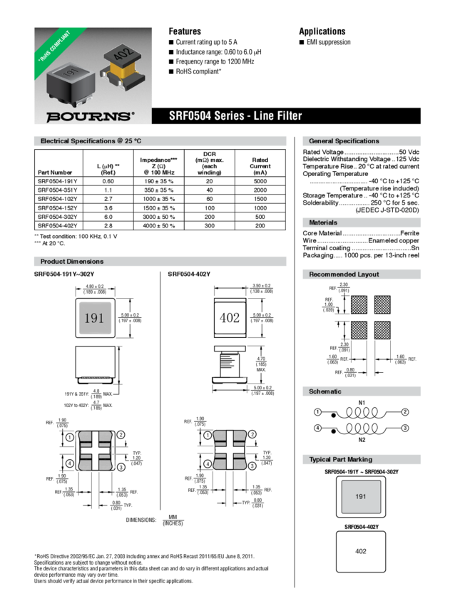 SRF0504-302Y, SRF0504-152Y, SRF0504-191Y, SRF0504-402Y