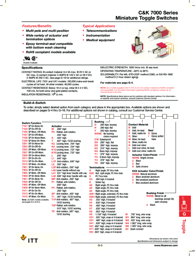 7401TCQE Switch Toggle ON None ON 4PDT Round Toggle PC Pins 5A 250VAC 28VDC PC Mount...