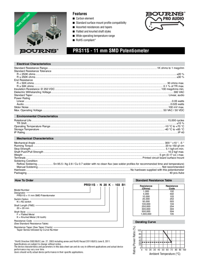 PRS11S-N20F-103B1 Res Carbon Film POT 10K Ohm 20% 1/20W 1(Elec)/1(Mech)Turn 6mm (11.7 X 18.5...