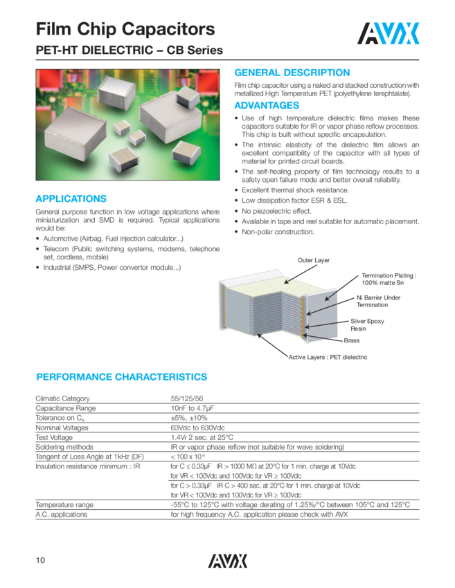 CB042D0474JBC Cap Film 2.2uF 63V PET-HT 5% (10.5 X 7.6 X 5.7mm) SMD 125°C T/R
