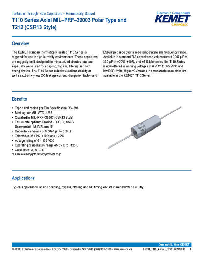 T110C186M035AT, T110C107J010AT, T110A273K035AT, T110C107M010AT, T110A224J035AT, T110A224K075AT