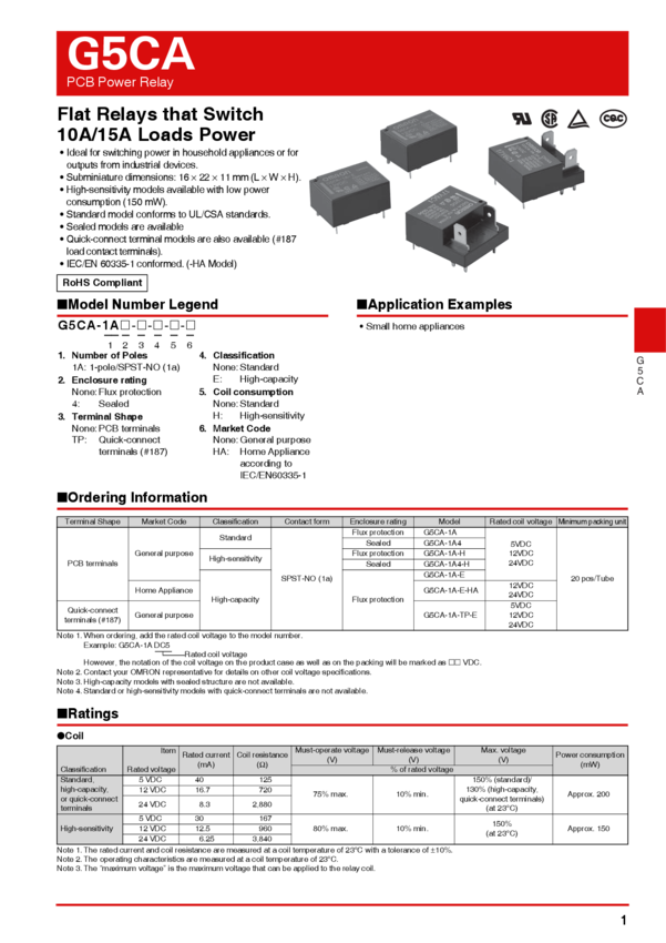 G5CA1A5DC, G5CA-1A-E DC5, G5CA1AE12DC, G5CA1A12DC, G5CA1A424DC, G5CA1AE24DC, G5CA1AH24DC