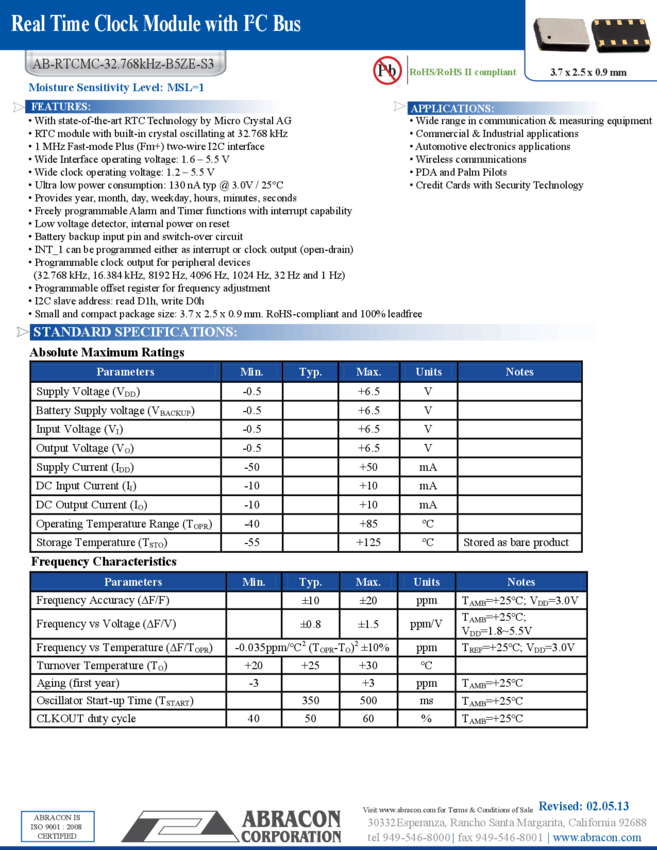 AB-RTCMC-32.768KHZ-B5ZE-S3-T Real Time Clock Serial 10-Pin SMD T/R
