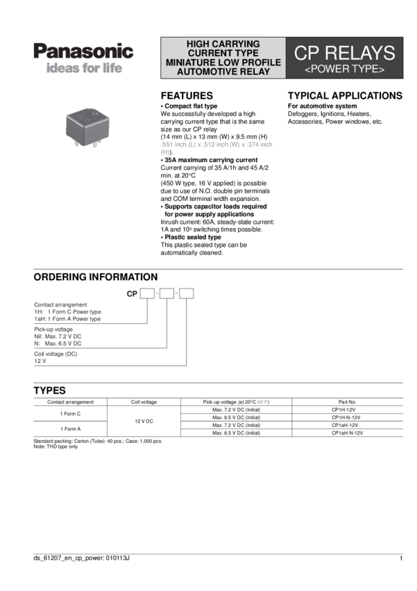 CP1H12J Electromechanical Relay SPDT 12VDC 320Ohm Through Hole