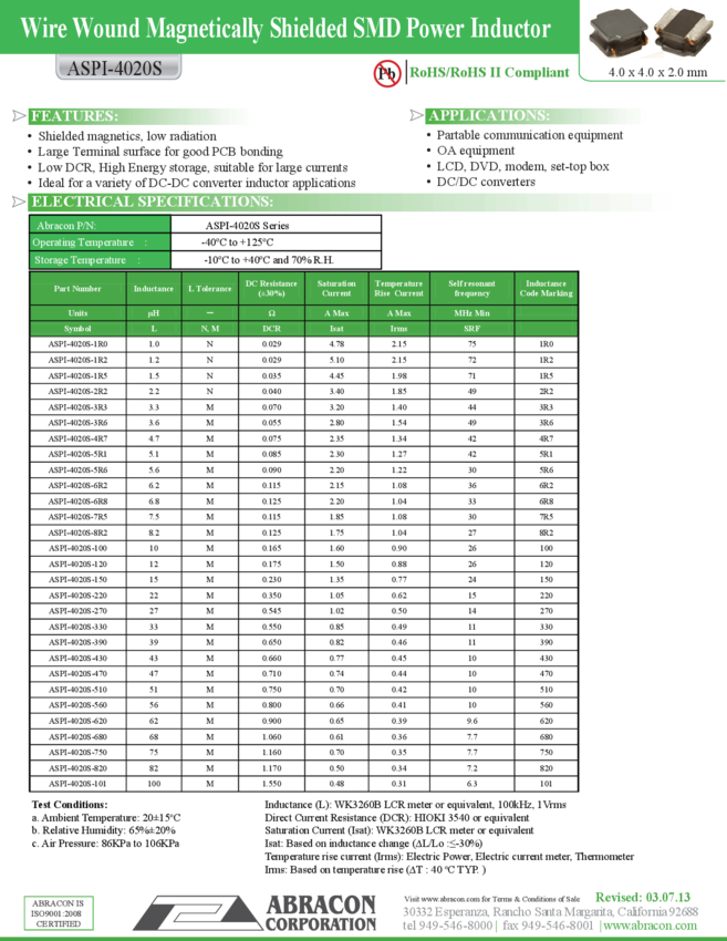 ASPI-4020S-2R2N-T Ind Power Shielded Wirewound 2.2uH 30% 100KHz Ferrite 1.85A 1616 T/R
