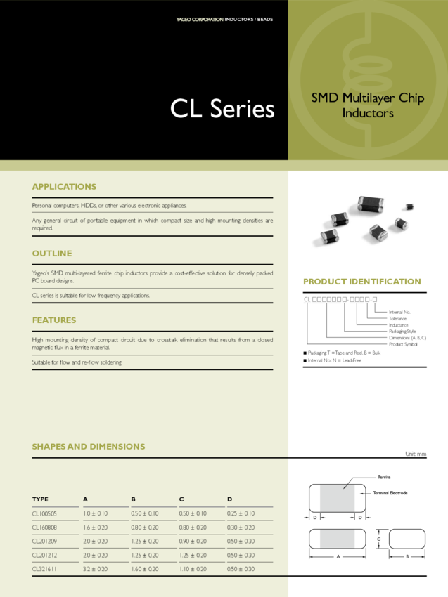 - CL160808T-100K-N, CL201209T-R47K-N, CL160808T-3R3K-N, CL201209T-R82K-N, CL201209T-1R0K-N, CL201209T-2R2K-N, CL321611T-100M-N, CL321611T-1R0K-N, CL321611T-100K-N