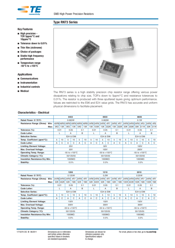 - 1676294-3, RN73C1E825RBTG, RN73C1E82R5BTG, RN73C1E845RBTG, RN73C1E9K53BTG, RN73C1E3K09BTG, RN73C1E2K74BTG, RN73C1E2K37BTG, RN73C1E9K76BTG, RN73C1J14K7BTD, RN73C1J35K7BTD, RN73C1J5K9BTD, RN73C1E1K87BTG, RN73C1E226RBTG, RN73C1E1K91BTG, RN73C1E232RBTG, RN73C1E1K96BTG, RN73C1E237RBTG, RN73C1E750RBTG, RN73C1E6K49BTG, RN73C1E681RBTG, RN73C1E61R9BTG, RN73C1E5K76BTG, RN73C1E57R6BTG, RN73C1E604RBTG, 1676457-3, RN73C1E280RBTG, RN73C1E200RBTG, RN73C1E205RBTG, RN73C1E210RBTG