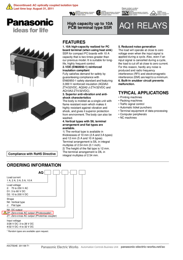 AQ3A2JZT432J Relay 20mA 32V DC-IN 3A 250V AC-OUT 4-Pin Carton/Case