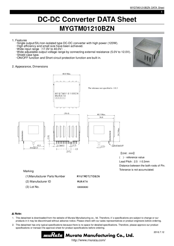 MYGTM01210BZN Module DC-DC 1-OUT 12V/5V 10A 13-Pin Tray