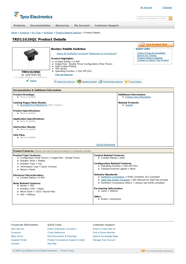 TRD11G20QC Switch Rocker (ON) OFF (ON) SPDT Quick Connect Paddle Rocker 20VAC 20VDC 0....