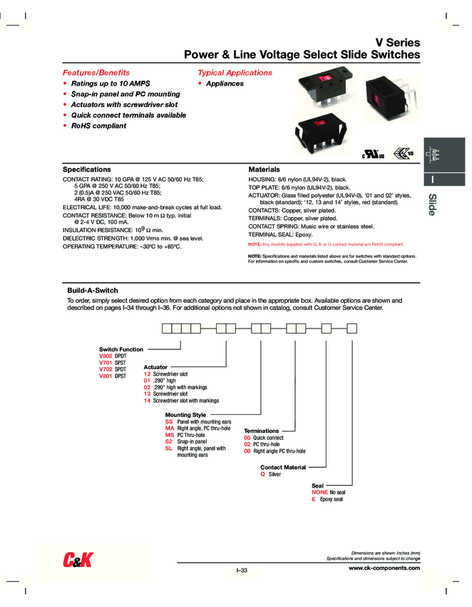 V702-12-MA-08-Q Switch Slide DPDT Screwdriver 10.1A 250VAC 28VDC Quick Connect Panel Mount