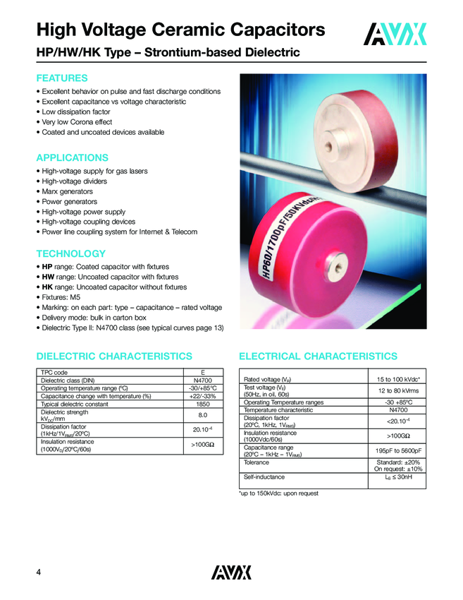 HP30E40391M-- Cap Ceramic 390pF 40000V N4700 20% (28 X 24mm) Screw Terminal 85°C Bulk