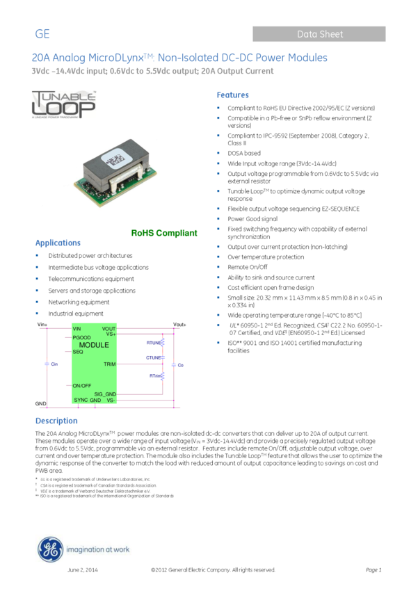 UVT020A0X3-SRDZ Module DC-DC 1-OUT 0.6V to 5.5V 20A 16-Pin SMD T/R