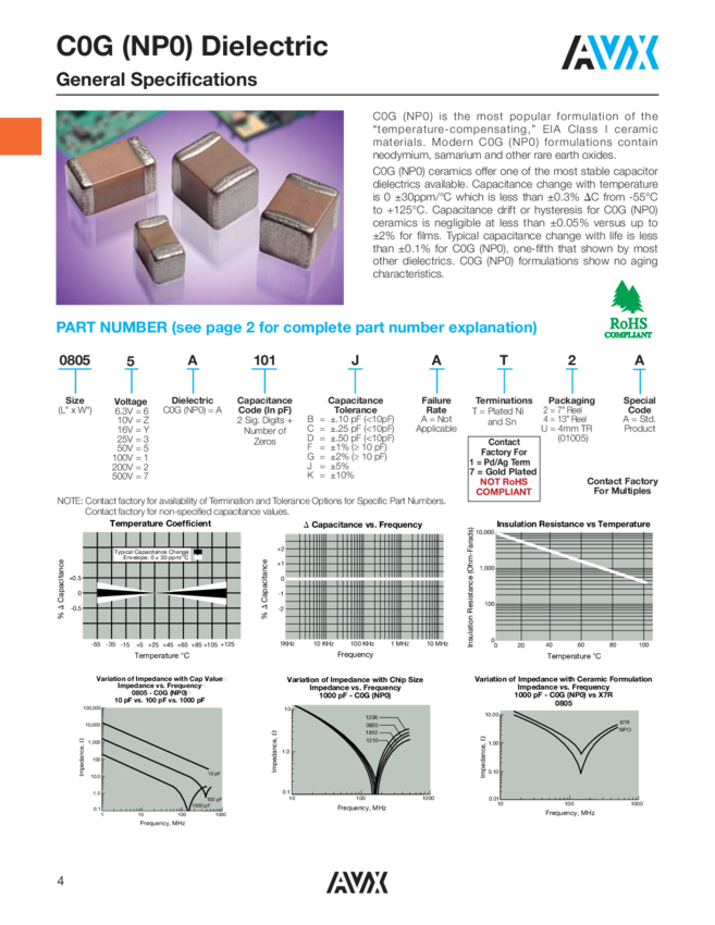 08055A511JAT2A Cap Ceramic 5pF 50V C0G 0.25pF SMD 0805 125°C T/R