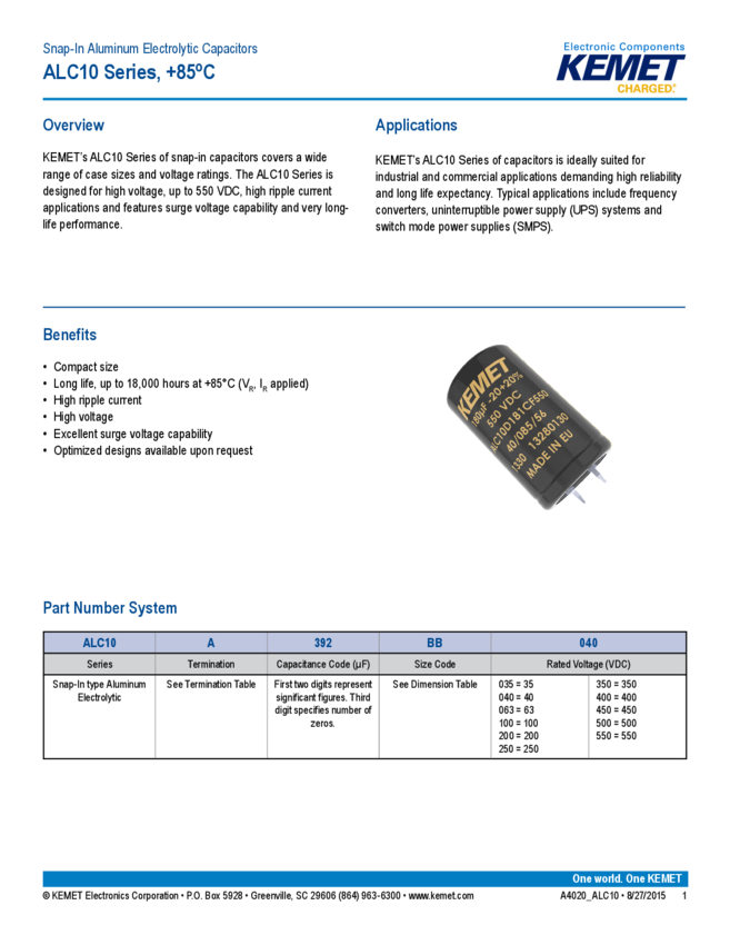 ALC10C391EE450 Cap Aluminum 390uF 450V 20% (40 X 45mm) Snap-In Aluminum Cylindrical Can 0....