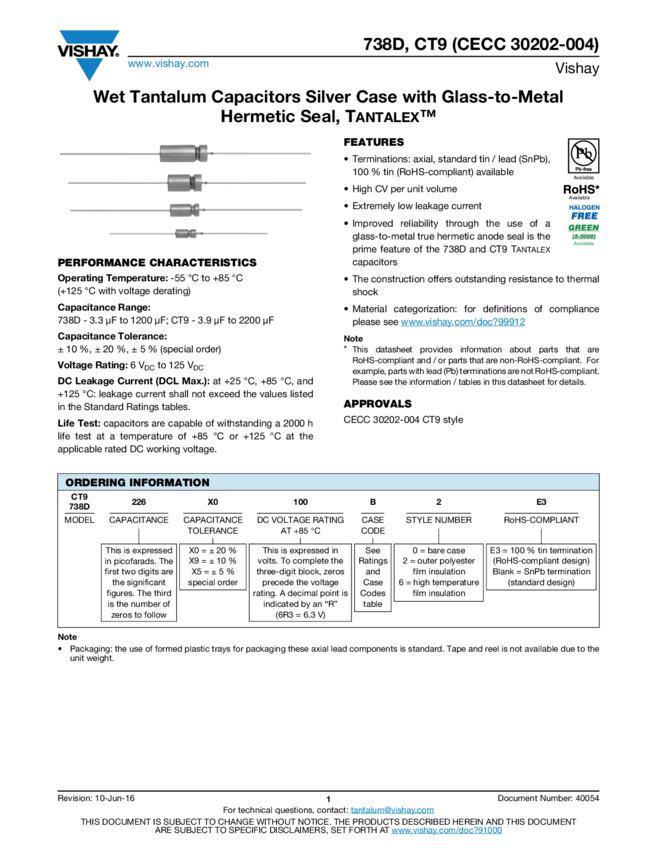 738D396X0063B2E3 Cap Tant Wet 39uF 63V 20% (7.92 X 20.22mm) Axial 125°C Plastic Tray