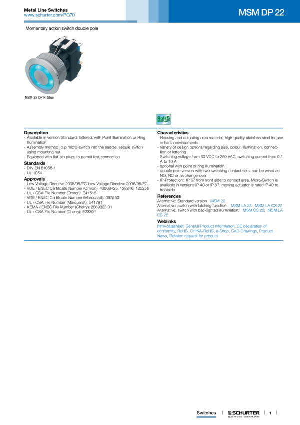 1241.6933.1121000 MSM22 DP PI SF 5 A @125VAC RD