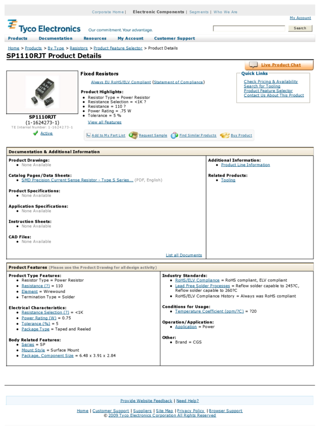 SP1110RJT Res Wirewound 110 Ohm 5% 1.5W ±20ppm/°C Molded SMD T/R
