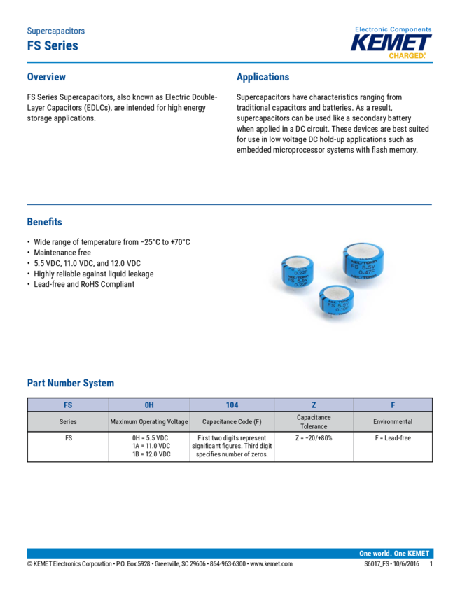 FS0H474ZF Cap 0.47F 5.5V -20% to 80% (21.5 X 13mm) Radial Cylindrical 7.62mm 70°C Bul...