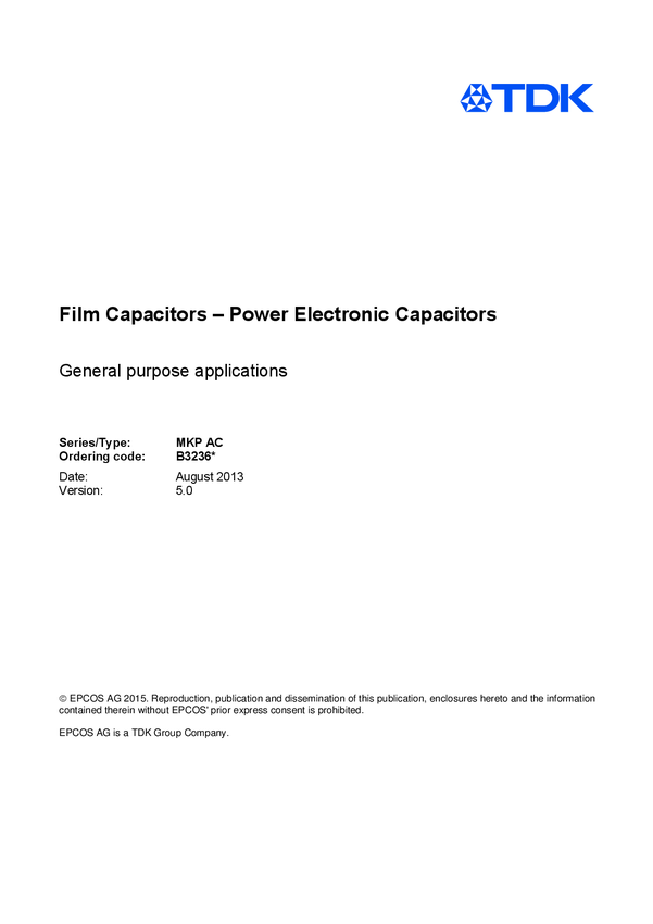 B32361A3606J30 Cap Film 60uF 460VAC PP 5% (63.5 X 107mm) Aluminum Cylindrical Can Screw Te...