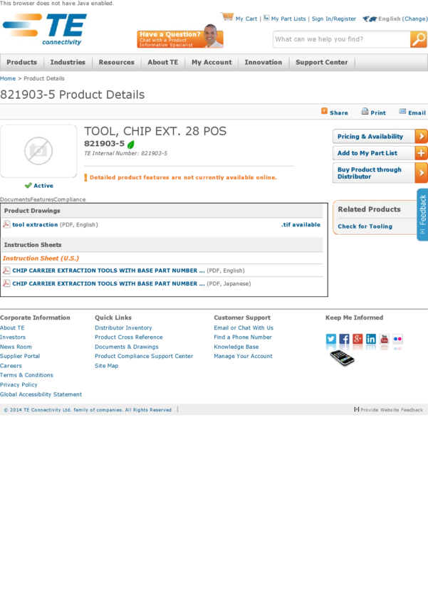 821903-5 Extraction Tool For PLCC Sockets-With Solder Tails