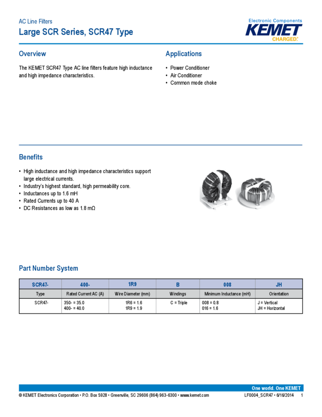 SCR47-400-1R9C008JH Ind Line Filter 800uH 10KHz 40A Pin