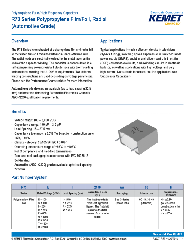 R73QN2100SE02K Cap Film 0.01uF 100V PP 10% Radial 22.5mm Bulk