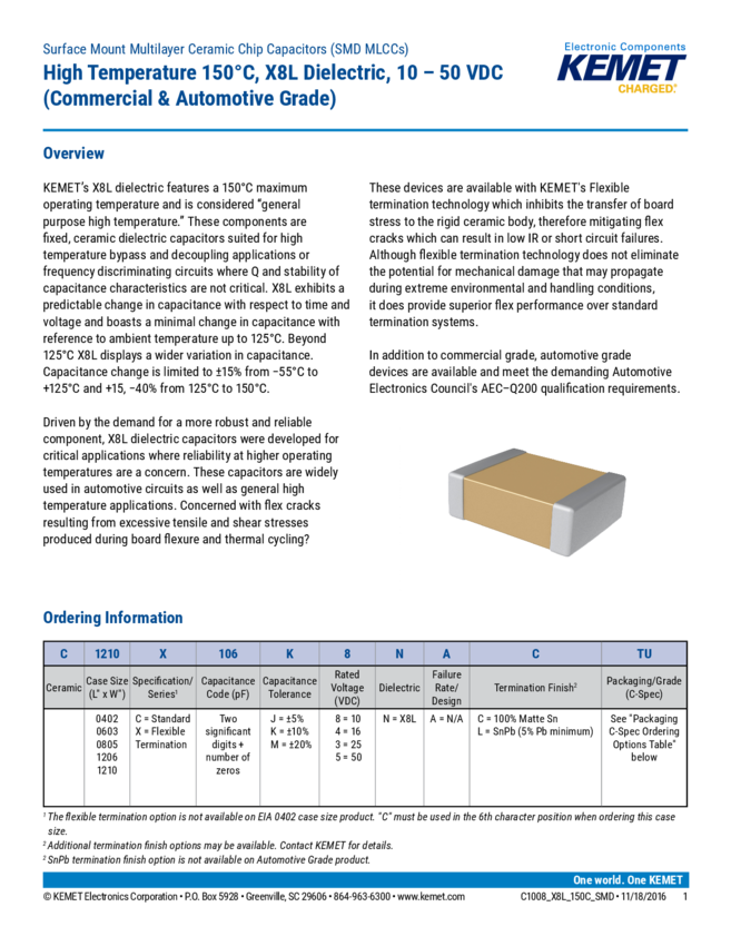 C1210C105K5NACAUTO Cap Ceramic 1uF 50V X8L 10% SMD 1210 150°C Embossed Plastic T/R