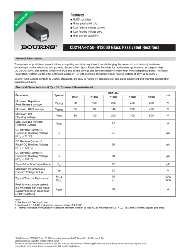CD214A-R12000 Diode 2KV 1A 2-Pin SMA T/R