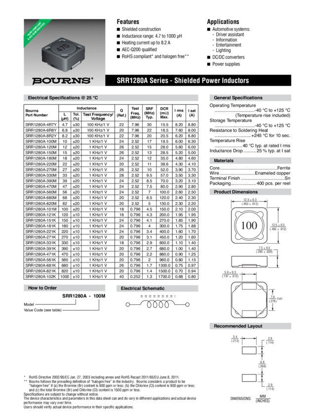 - SRR1280A-221K, SRR1280A-330M, SRR1280A-100M, SRR1280A-8R2Y, SRR1280A-4R7Y, SRR1280A-180M, SRR1280A-6R8Y, SRR1280A-331K, SRR1280A-120M, SRR1280A-270M