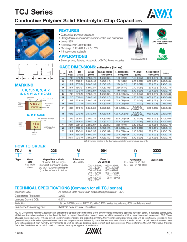 - TCJB105M050R0300, TCJY106M035R0070, TCJP476M006R0500, TCJB686M004R0070, TCJG107M004R0300, TCJP105M025R0500, TCJA226M004R0300, TCJW157M006R0040, TCJY336M016R0045, TCJD227M006R0050, TCJY157M010R0040, TCJY107M010R0045, TCJY227M006R0035, TCJD227M010R0040, TCJD685M075R0120, TCJB685M025R0150, TCJB685M025R0090, TCJY686M010R0045, TCJY477M004R0040, TCJY157M006R0040, TCJD107M010R0045, TCJD335M125R0250, TCJY227M006R0040