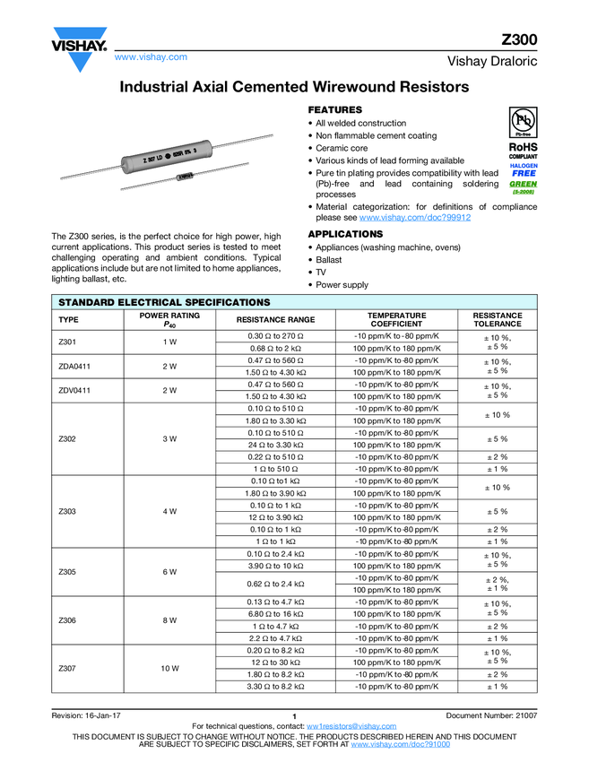 Z32041433300J6C000 Res Wirewound 330 Ohm 5% 3W 100ppm/°C to 180ppm/°C Ceramic AXL Thru-Hole Am...