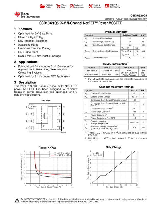 CSD16321Q5 Trans MOSFET N-CH 25V 31A 8-Pin SON T/R