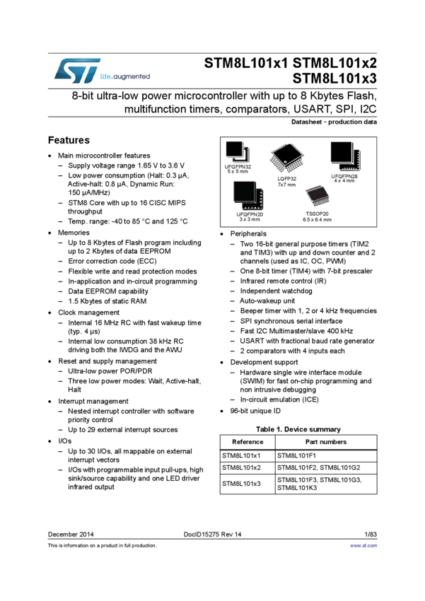 STM8L101F3U6ATR, STM8L101F2U6ATR, STM8L101F2U6TR