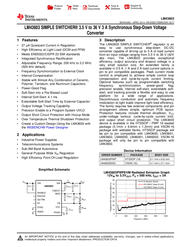 LM43603PWPT Conv DC-DC Single Step Down 3.5V to 36V 16-Pin HTSSOP T/R
