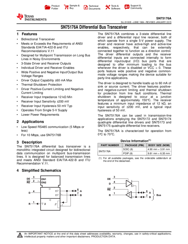 SN75176ADR Single Transmitter/Receiver RS-422 8-Pin SOIC T/R
