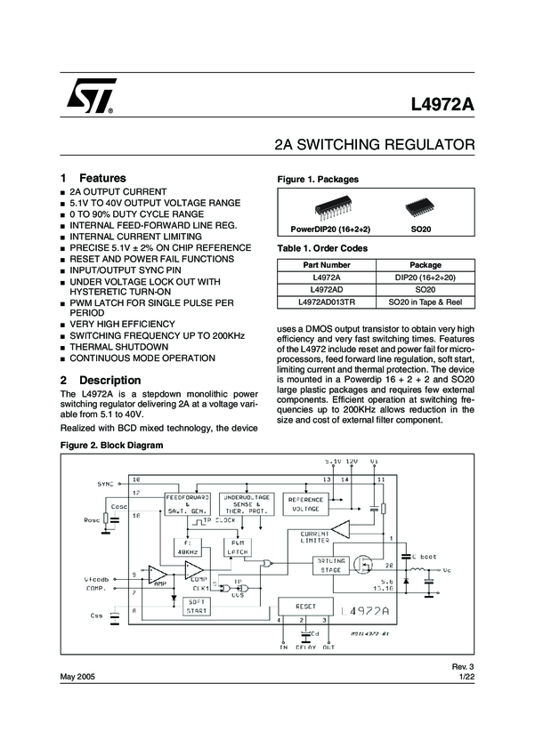 L4972AD013TR Conv DC-DC Single Step Down 15V to 50V 20-Pin SO T/R