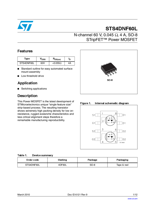STS4DNF60L Trans MOSFET N-CH 60V 4A 8-Pin SO N T/R