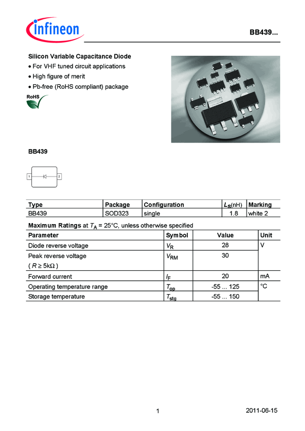 BB439E6327 Diode VAR Cap Single 30V 31.5pF 2-Pin SOD-323 T/R