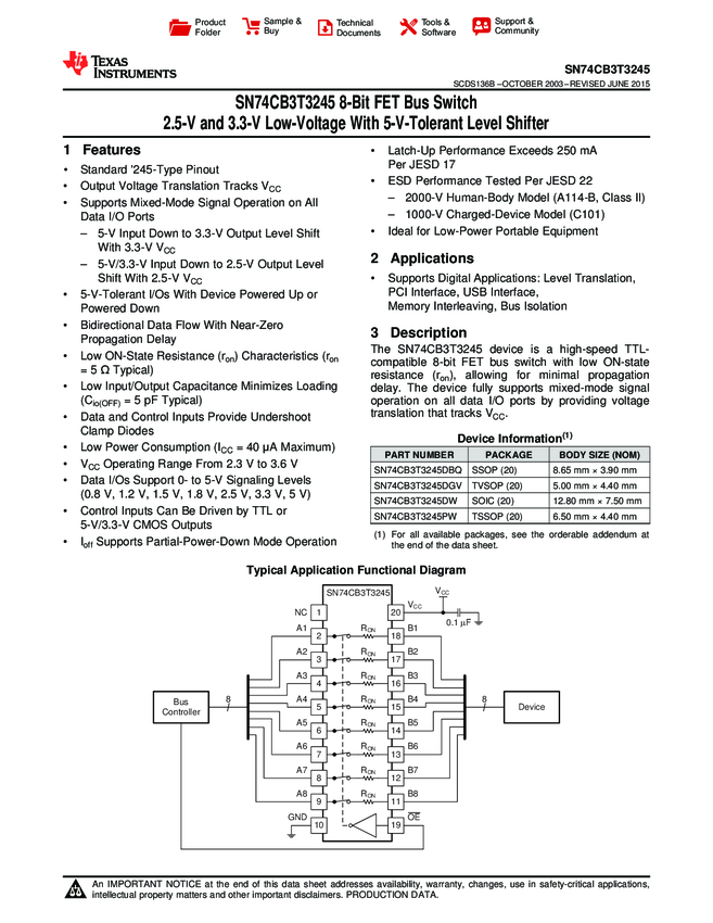 SN74CB3T3245DGVR Bus Switch 1-Element CMOS 8-IN 20-Pin TVSOP T/R