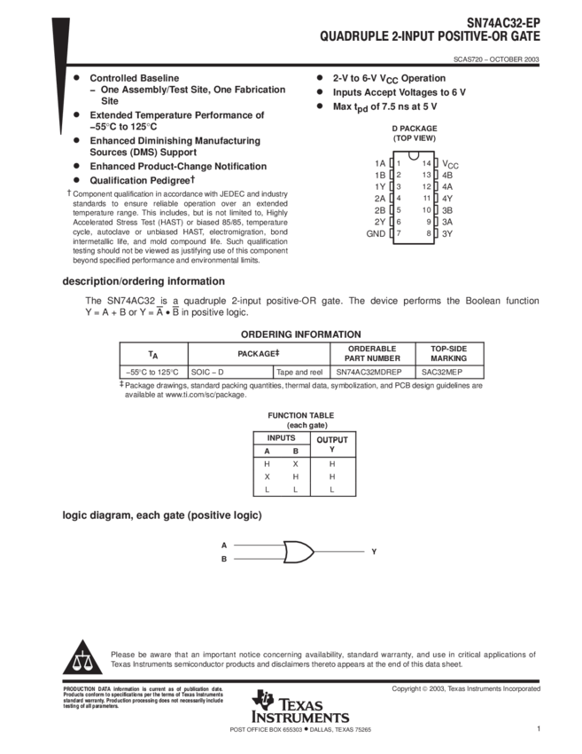SN74AC32MDREP OR Gate 4-Element 2-IN CMOS 14-Pin SOIC T/R