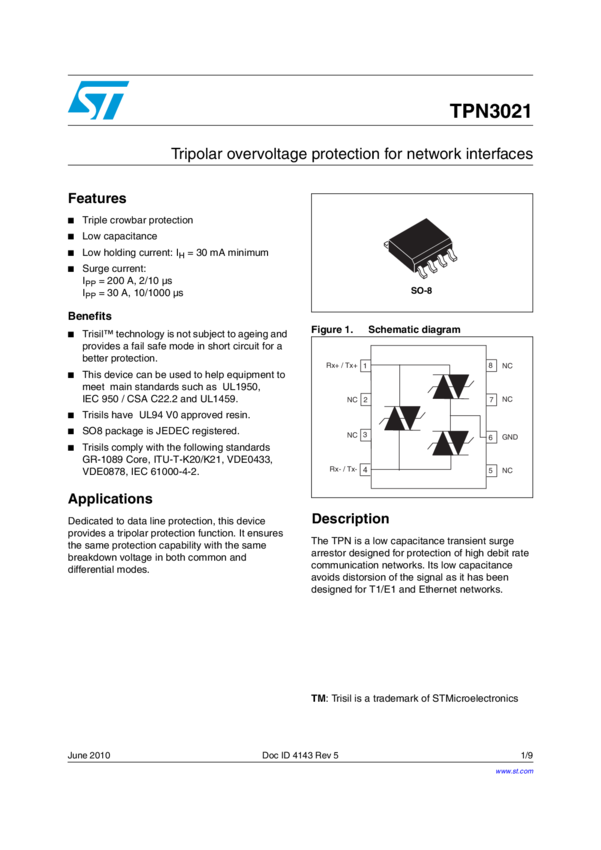 TPN3021RL Thyristor DIAC 28V 9A 8-Pin SO N T/R